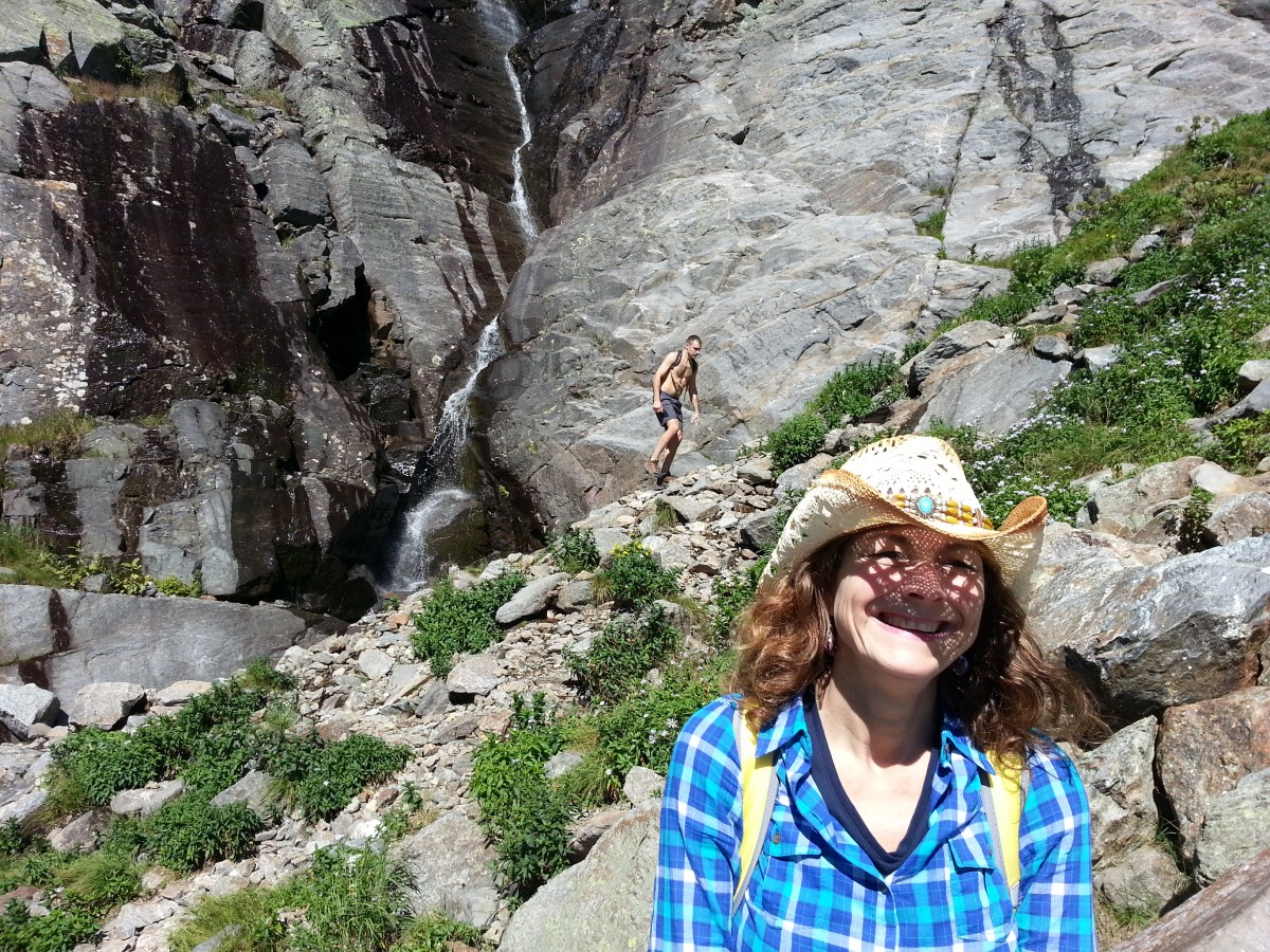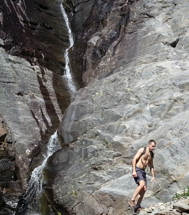 Mt Washington NH - Tuckerman Ravine Trail Water Fall - Son Ben in background